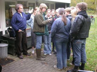 Ardie arriveert om 16:00 uur voor een uurtje biologie-les met een klas VMBO-leerlingen. Ze hebben het geluk dat we net daarvoor een Bladkoninkje hebben gevangen, nr. 26 voor dit seizoen. Ook Edwin de Weerd komt de vogel nog even bekijken en maakt een aantal mooie foto's. De foto van het Bladkoninkje op de website is door hem gemaakt.