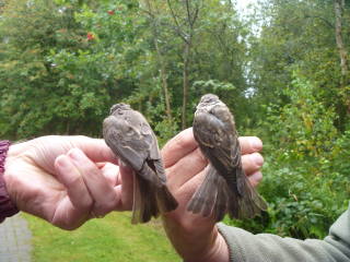 Vanmiddag rond 15.00 uur arriveerde Wil en Hetty Tamis, die ons een paar dagen zullen assisteren. Zij brachten direkt een leuk rondje vogels mee, met daarin een adulte en juveniele Grauwe Vliegenvanger.
