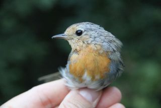 In sectie 0 vingen we nog een Roodborst met een sterk gesleten en daardoor opvallend vale kop. De lichaamsrui was al ingezet, dus de borst begon wel al weer mooi oranje te kleuren. Een grappig gezicht, en het laat ook mooi zien dat rui voor vogels zo belangrijk is. Deze Roodborst werd gevangen in het rondje dat louter uit adulte vogels bestond, met naast de Roodborst ook nog een Fitis en Tjiftjaf.