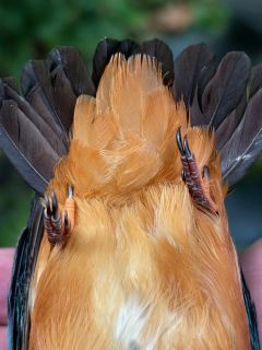 Minder leuk was de vangst in een mistnet van een natte, gewonde Waterral. Vermoedelijk is deze door een Havik geslagen en is de Havik met prooi en al in een mistnet beland. De Havik is ontsnapt en de Waterral is onderweg naar de ringtafel overleden. Drie keer pech dus. De Havik heeft geen prooi. De Waterral is dood. En wij hebben geen Havik.